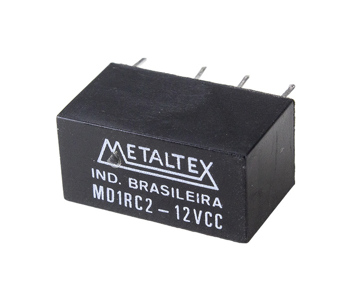 Relé Reed 1NA - Bobina de 12VCC - Capacidade de 0,500A - Potência 10W - Comutação de 200V - Rigidez Dielétrica de 2KVCA